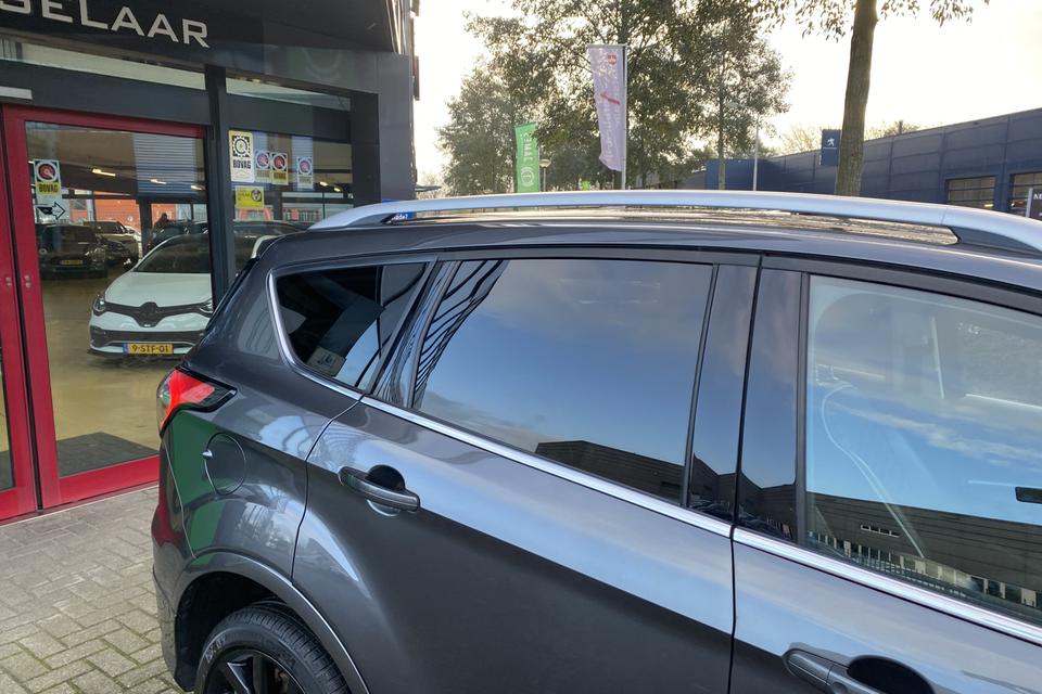 Hij zorgt voor een ontspannen rijervaring, deze Ford Kuga. Het is een auto uit 2018. De aandrijving van deze Ford wordt verzorgd door een viercilinder benzinemotor en een handgeschakelde versnellingsbak. Deze Ford is voorzien van een mooie en comfortabele lederen bekleding. Deze Ford Kuga heeft verwarmbare voorstoelen, voor zowel bestuurder als bijrijder. Chauffeur en bijrijder zitten stabiel in de scherpe bochten door de sportstoelen. Het panoramadak zorgt voor maximale lichtinval en kan worden geopend voor extra ventilatie. De elektrische achterklep opent met een druk op de knop, zodat u gemakkelijk toegang heeft tot de bagageruimte. Als de ‘r′ in de maand zit, komt zo′n verwarmd stuurwiel als geroepen! Dankzij de xenonverlichting profiteert u in het donker van een krachtige en heldere lichtbundel. Bij de uitrusting van deze auto horen onder meer 18 inch lichtmetalen velgen, aluminium dakrailing, donker getint glas achter, LED-achterlichten, verstelbare lendensteunen, metallic lak, elektrisch bediende ramen, elektrisch inklapbare buitenspiegels, LED-dagrijverlichting en in delen neerklapbare achterbank.