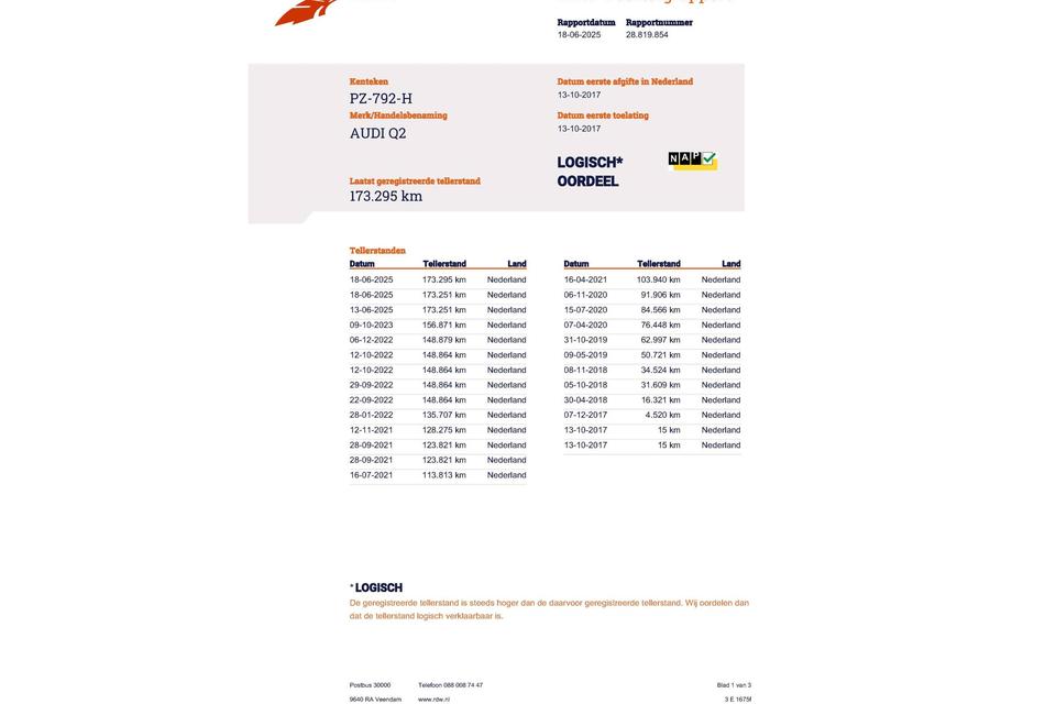 Huidige stand 173.229km