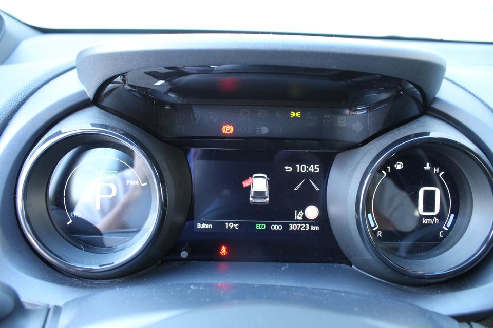 Rij- en route-info wordt perfect in beeld gebracht door het digitale dashboard. Zodra u naar de 'R' schakelt, gaat de achteruitrijcamera in werking en heeft u een perfect zicht op alles wat zich achter de auto afspeelt. Adaptive cruise control houdt de ingestelde snelheid vast en houdt afstand tot het voertuig voor u. Handig en veilig: Connected Services. Alle vitale functies en data van de auto checkt u via de app op uw smartphone. Kies de muziek waarvan u houdt, dankzij de DAB-radio klinkt het altijd geweldig. Intussen bedient u het audio-installatiesysteem en het full map navigatiesysteem met de knoppen op het stuur. Deze Toyota is voorzien van kruisend verkeer detectie, electronic climate control, draadloos opladen, regensensor, keyless entry en buitentemperatuurmeter.