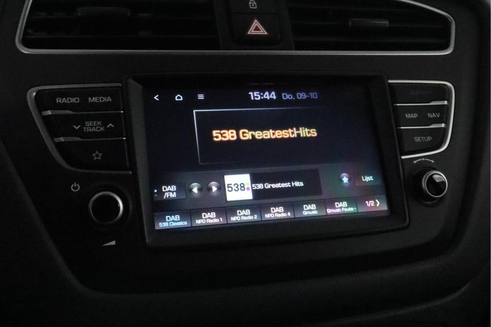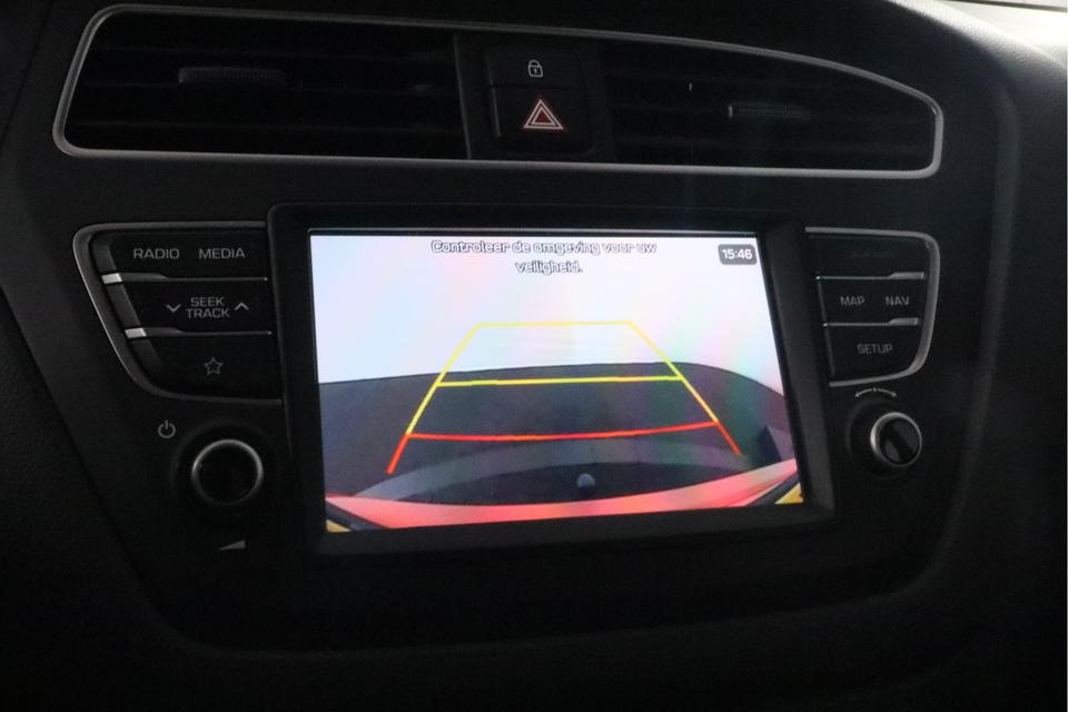 De achteruitrijcamera laat duidelijk zien hoeveel ruimte u nog heeft bij het inparkeren. Het infotainmentsysteem bedient u met uw vingers of met uw stem, met dank aan de geïntegreerde stembediening. Ook praktisch: deze auto is voorzien van een eigen full map navigatiesysteem. Aan boord van deze Hyundai i20 is een achteropkomend verkeer waarschuwing voor extra veiligheid. Automatische airconditioning regelt volautomatisch de temperatuur. U kiest de gewenste temperatuur en het systeem doet de rest. Met DAB ontvangst, regensensor, cruise control, automatisch dimmende binnenspiegel, lederen stuur en centrale deurvergrendeling met afstandsbediening is deze Hyundai helemaal compleet.