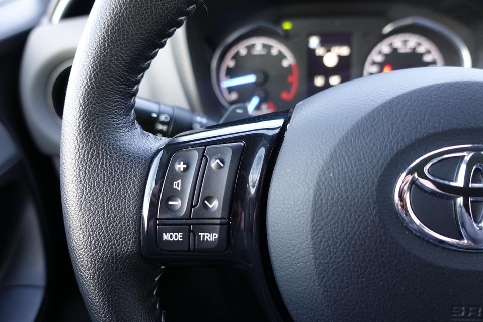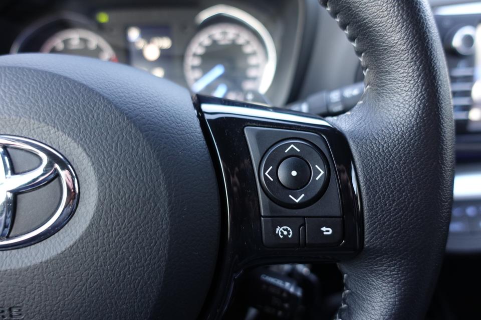 Zodra u naar de 'R' schakelt, gaat de achteruitrijcamera in werking en heeft u een perfect zicht op alles wat zich achter de auto afspeelt. Een optie die de veiligheid verhoogt, is de bediening vanaf het stuur van het audio-installatiesysteem. Bij de luxe van deze auto hoort ook automatische airconditioning. Een paar spetters of een donderbui? De regensensor weet het als eerste en reageert precies goed! Ook fijn als u op de voorgeschreven snelheid wilt blijven: de cruise control. Met lederen stuur, centrale deurvergrendeling met afstandsbediening en lederen versnellingspook is deze Toyota helemaal compleet.