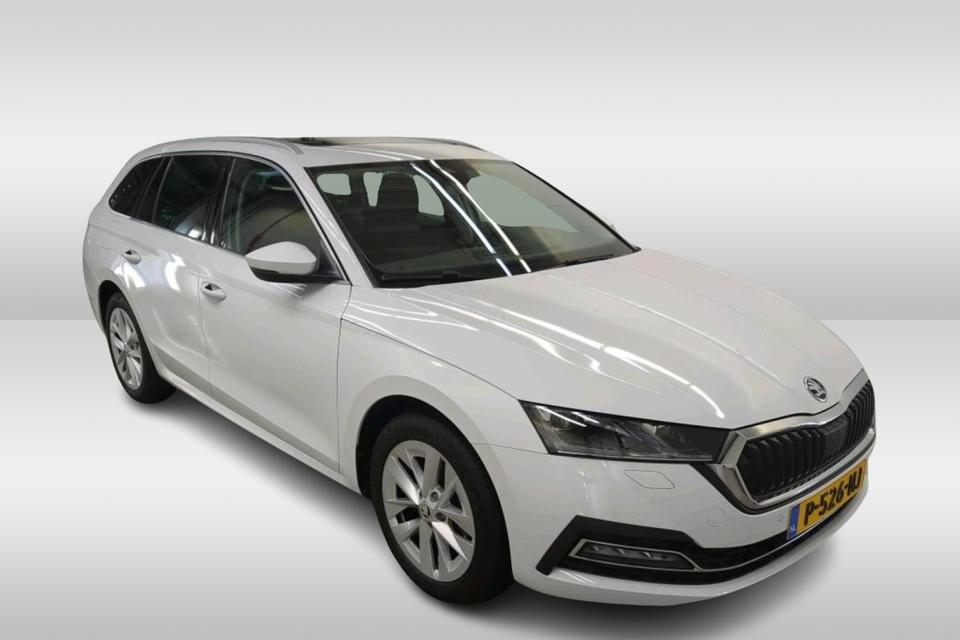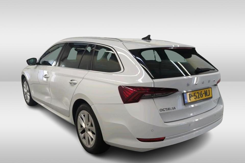 Zeer complete ŠKODA Octavia Combi 1.0 TSI Business Edition Plus in de elegante kleur Moon White Metallic. Deze origineel Nederlands geleverde Octavia combineert comfort, moderne technologie en zuinig rijden met de ruimte die je van een Combi verwacht.